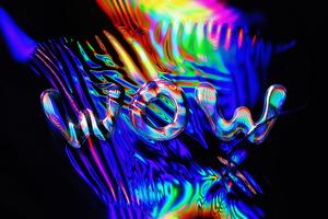 The typographic composition WOW is formed using gel on the surface of a CD. Captured in macro, the interplay of light and reflections transforms the letters into a shimmering, fluid abstraction.